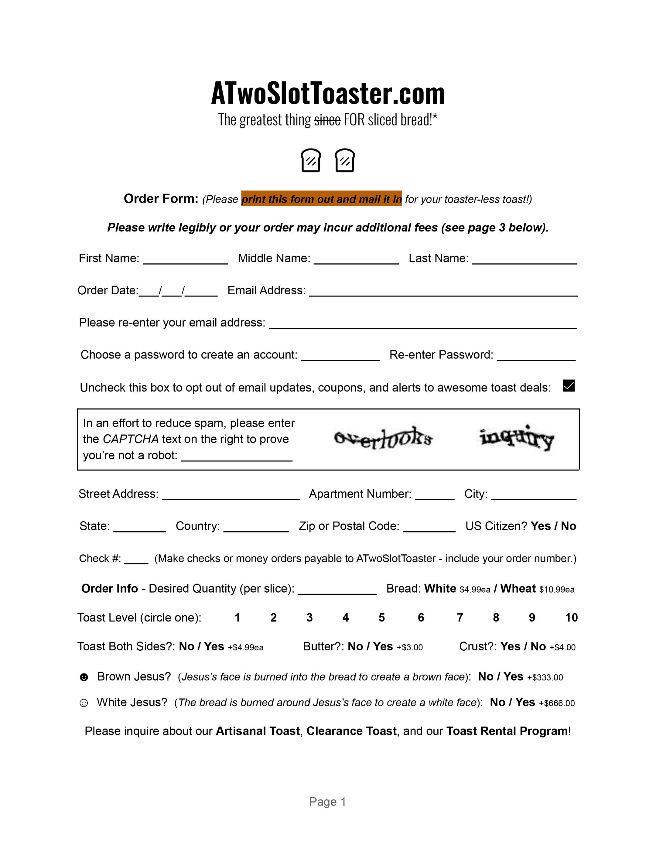Don't believe it? Don't NOT believe it! Print this form out and mail it in for toasterless toast!