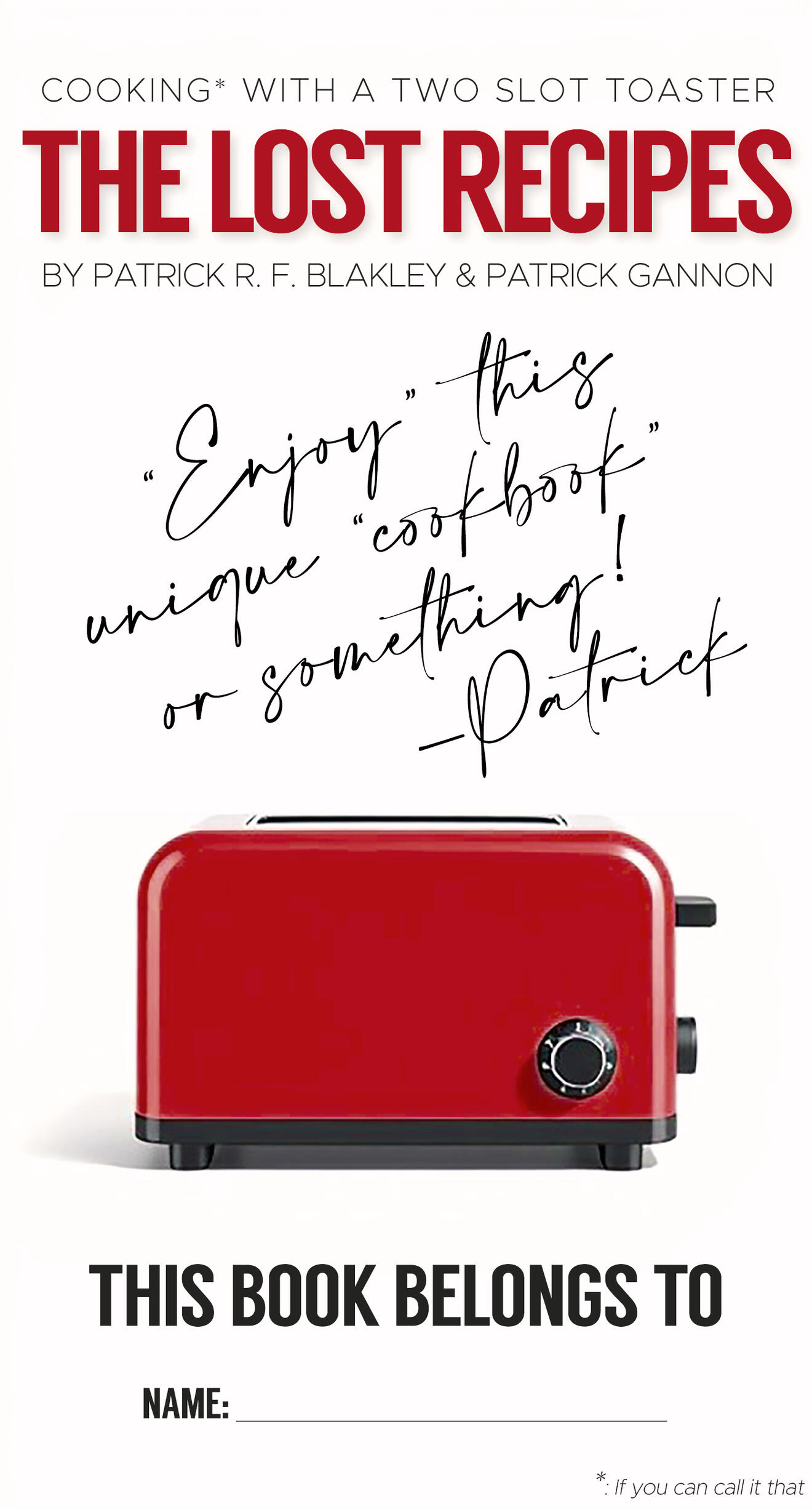 You can order your toaster-less toast here! Print the form, fill it out, and mail it in for toast without a toaster! Then shop for international award-winning toaster cookbooks (seriously), or a 1.5-hour stage play in 2 acts! What else could you want? Nothing. Nothing is the answer to that question. So start by buying the original 208-page toaster cookbook right now by clicking the cover, or get scrolling...